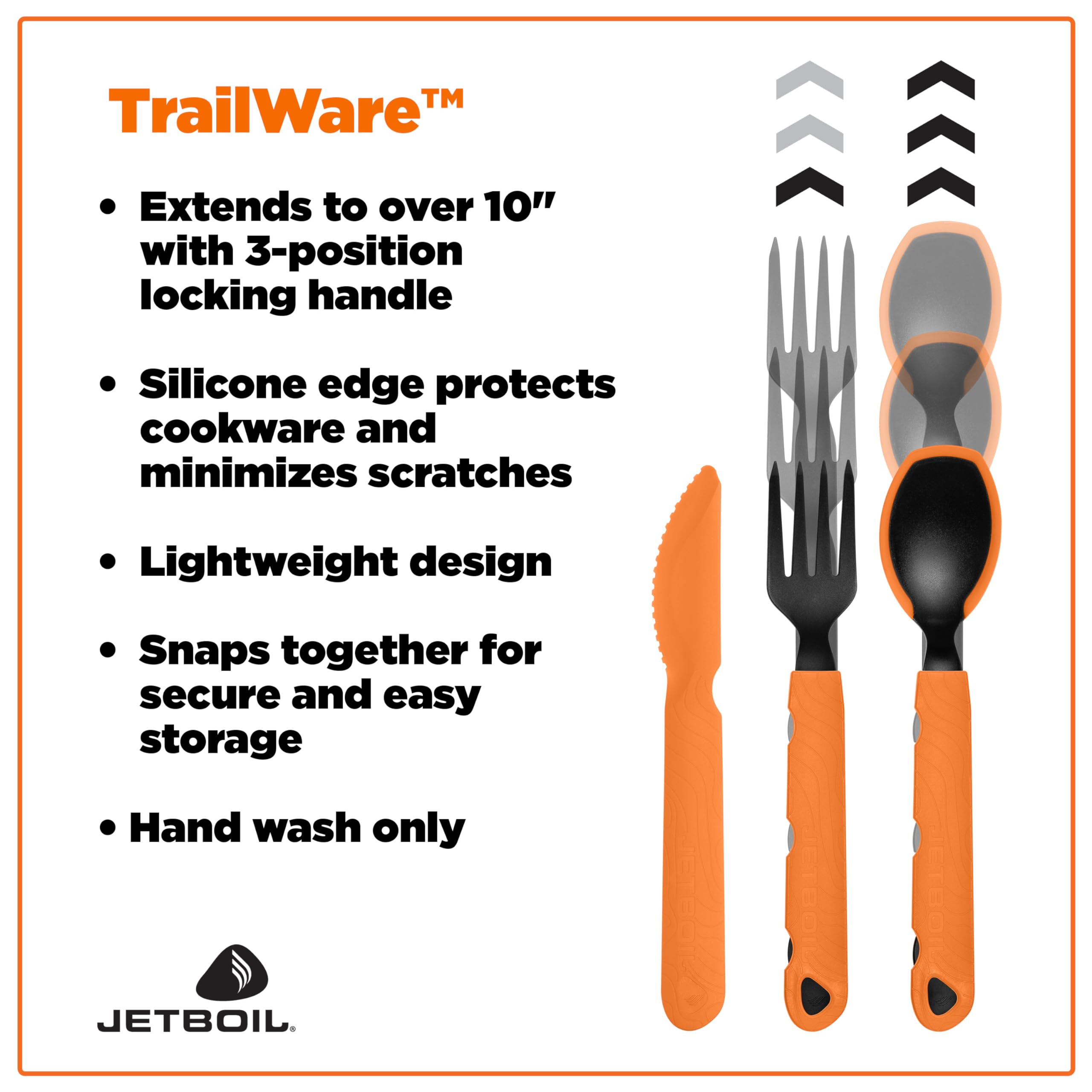 Jetboil TrailWare Backpacking and Camping Utensil Set, Extendable Fork, Knife and Spoon
